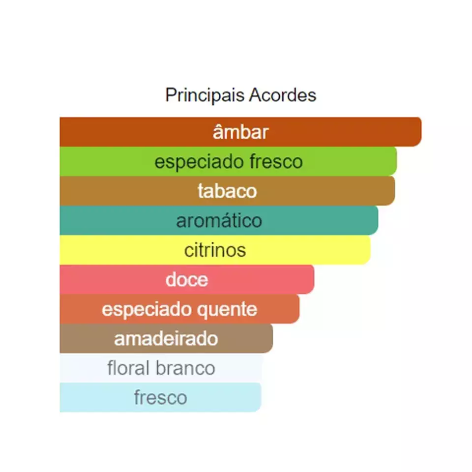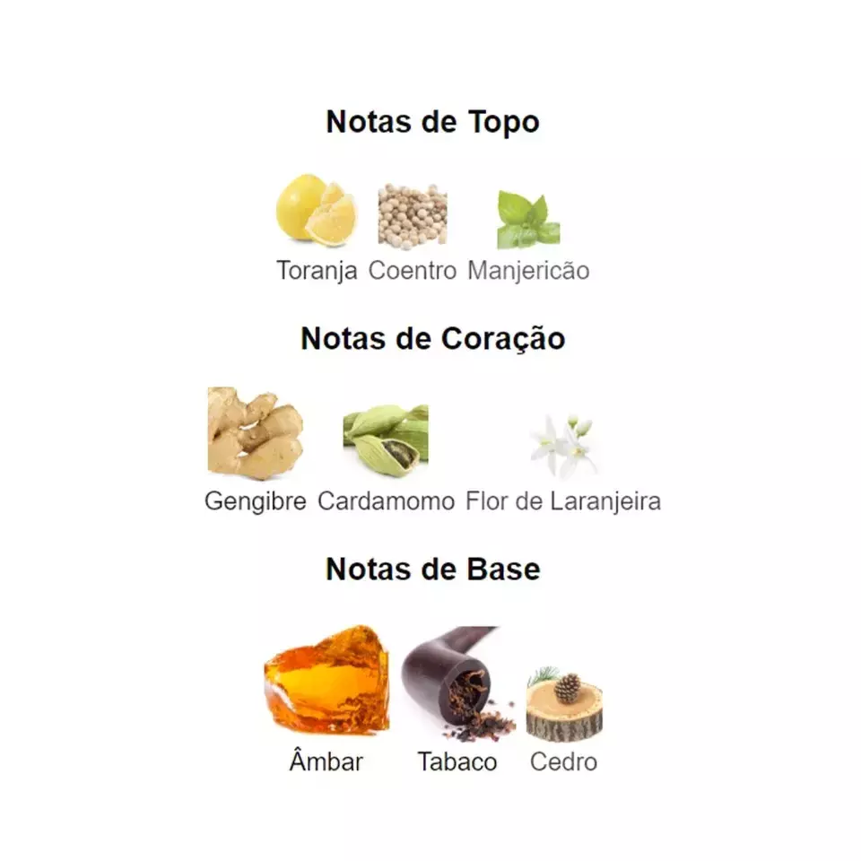 As notas de fundo são: Âmbar, Tabaco e Cedro.
