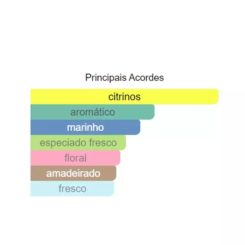 As notas de topo são: Lima, Limão, Bergamota, Jasmim, Laranja, Mandarina e Néroli.
