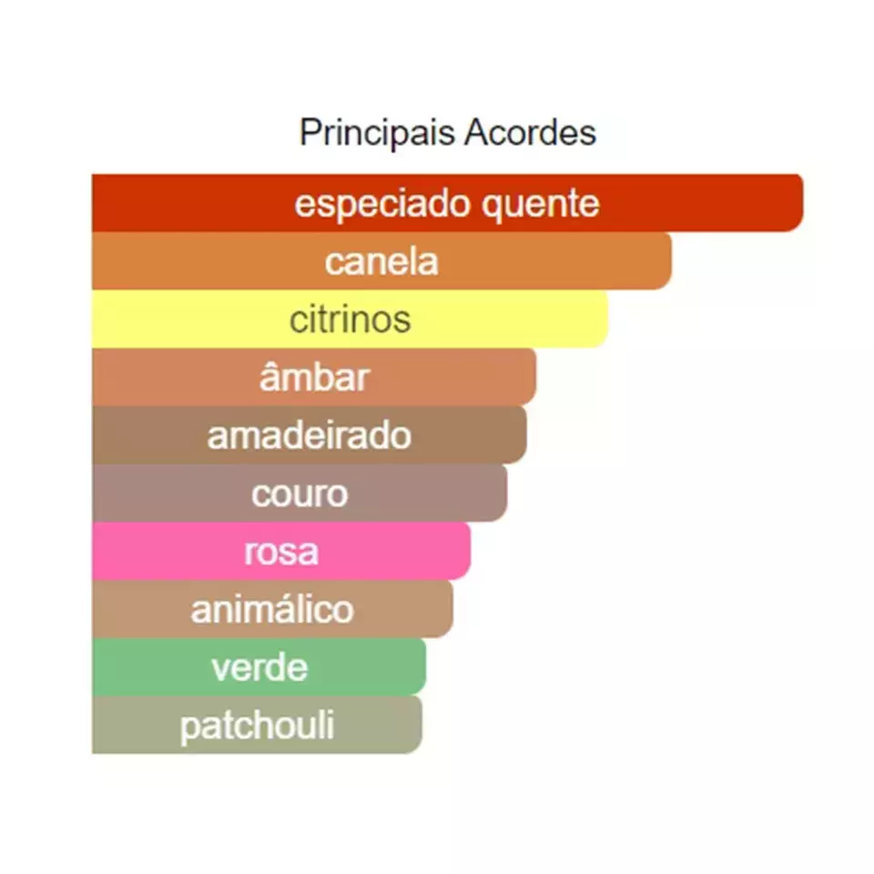 As notas de fundo são: Âmbar, Couro, Notas Amadeiradas e Patchouli Indiano.