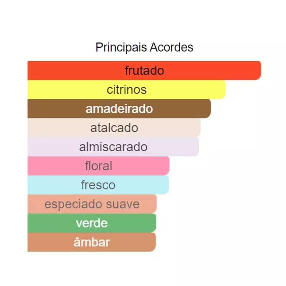 As notas de fundo são: Groselha Preta, Pêssego, Âmbar, Lilás e Ylang Ylang.