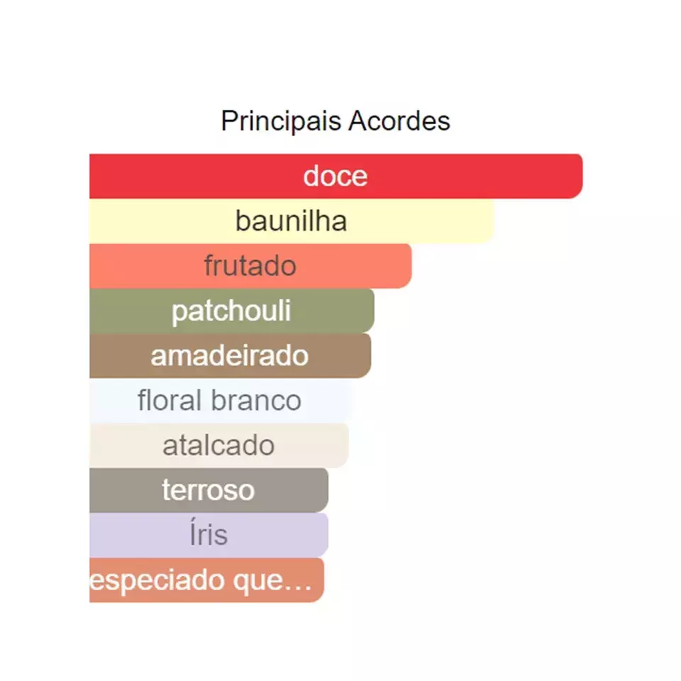 As notas de fundo são: Pralinê, Baunilha, Patchouli e Fava Tonka.