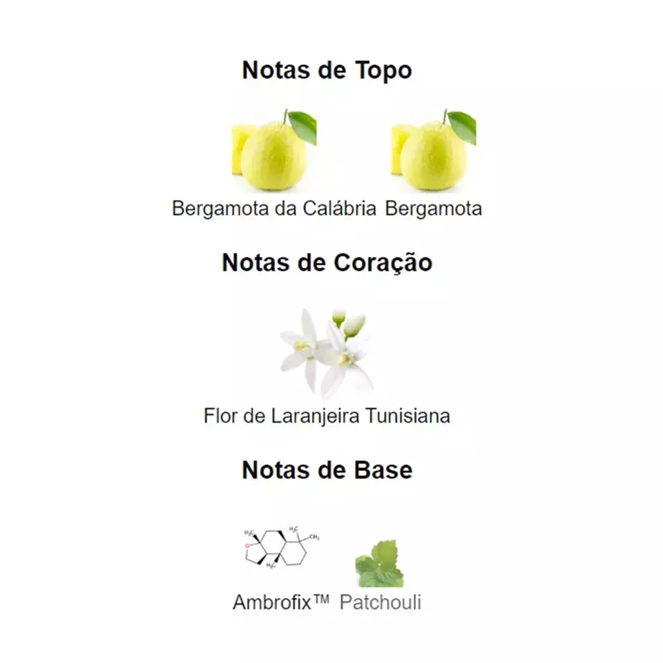 A nota de coração é Flor de Laranjeira Tunisiana.